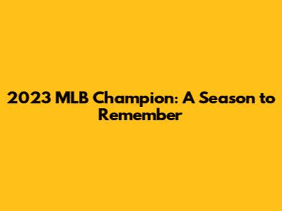 2023 MLB Champion: A Season To Remember