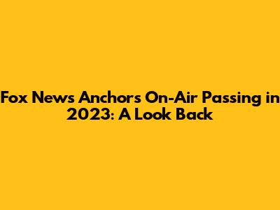 Breaking News: Fox News Anchor's On-Air Passing In 2023