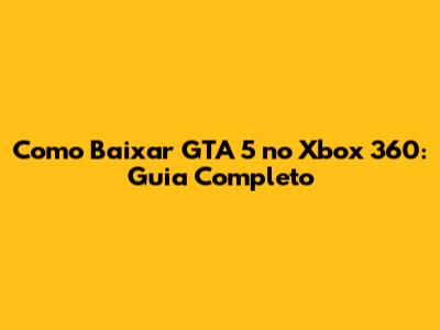 Como Baixar GTA 5 No Xbox 360: Guia Completo