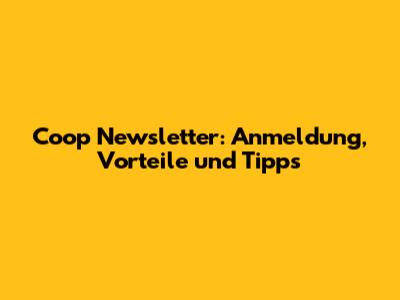 Coop Newsletter: Anmeldung, Vorteile Und Tipps