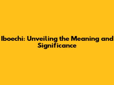 Iboechi: Unveiling The Meaning And Significance