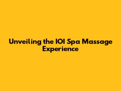 Unveiling the IOI Spa Massage Experience