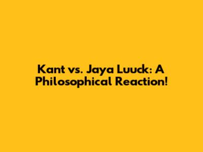 Kant Vs. Jaya Luuck: A Philosophical Reaction!