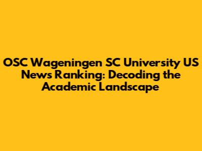 Hey guys! Let's dive into something super interesting – the OSC Wageningen SC University US News Ranking! Now, you might be thinking, "What's the big deal?" Well, it's a fantastic way to get a handle on how universities are viewed in the academic world. These rankings, like those from US News & World Report, are kind of like report cards for universities, giving us a peek into their academic prowess, research output, and overall quality. Understanding these rankings can be a game-changer for students, researchers, and anyone curious about the higher education scene. In this article, we're going to break down everything you need to know about the OSC Wageningen SC and its place in these rankings. We'll explore the methodologies behind these rankings, what they actually mean, and why they matter to you. Get ready to have your questions answered and maybe even discover some exciting insights about your favorite universities!