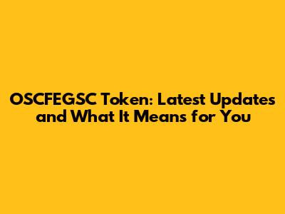 OSCFEGSC Token: Latest Updates And What It Means For You