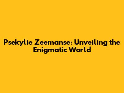 Psekylie Zeemanse: Unveiling The Enigmatic World