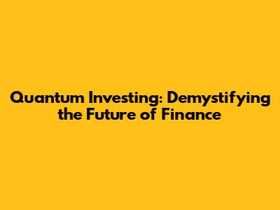 Quantum Investing: Demystifying The Future Of Finance