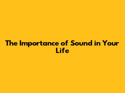 The Importance Of Sound In Your Life